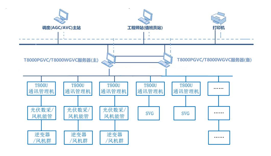 新能源自动发电控制(AGC)及自动电压控制(AVC)是电力系统安全、经济运行的重要保障。T8000PGVC/T8000WGVC系统采用了当今较新的软硬件技术、网络通信技术、跨平台技术,遵循并优于行业主流标准,处于国际领先水平,主要适合于新能源电站的一体化AGC/AVC控制。系统能运行于Unix、Linux、凝思、磐石等主流操作系统及其支持的软硬件平台,主要功能包括发电厂建模、画面组态、逻辑组态、计算量组态、AVC控制策略、AGC控制策略、虚规约、模板、曲线、报表、告警、光字、日志等模块。